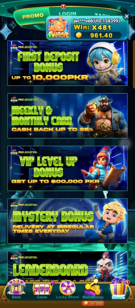 The Aviator game itself is one of the main attractions inside the app. It is a fast-rising multiplier game where players cash out before the airplane flies away. This creates excitement and gives users a chance to earn quickly. Because the platform supports JazzCash and Easypaisa withdrawals, it has become one of the most trusted earning apps in Pakistan.