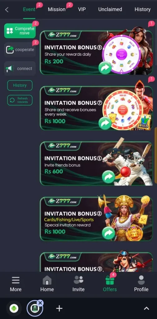 Z777 Game provides daily login bonuses, referral rewards, and special event prizes to increase users’ chances of earning more money.